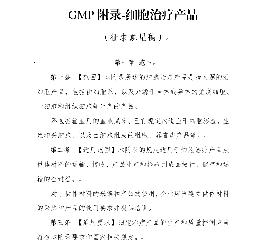 【征求意见】食品药品审核查验中心公开征求《GMP附录-细胞治疗产品》(征求意见稿)的意见